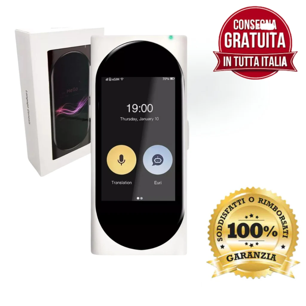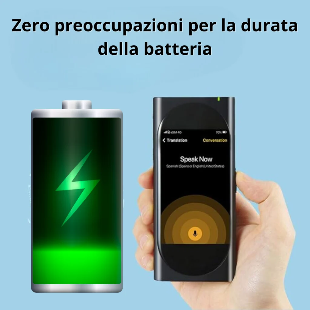 La batteria ad alta efficenza ti permetterà di tradurre per 36 48 ore senza doverti preoccupare di restare scarico, si ricarica in soli 50 minuti grazie alla ricarica veloce.